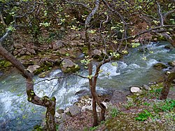 Vouraikos Gorge is located in Achaia, 13 km northeast of Kalavryta . Together with the mountainous mass of Helmos (Aroan Mountains) they form a single protected area that since 2009 has been designated as the National Park of Greece . The gorge is about 20 km long and flows through the Vouraikos river, to which it owes its name. The Vouraikos River is located in Achaia and has a length of 37.5 kilometers.